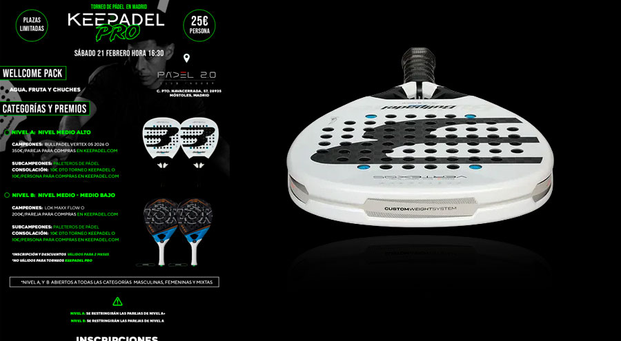 Padel Wolrd Press – El Keepadel Pro vuelve a la carga el sábado 21 de febrero con una edición pensada solo para los que compiten de verdad. Nada de pachangas: nivel alto, tensión desde el primer punto y premios que marcan diferencias. La acción se vivirá en el Pádel 2.0 de Móstoles, club indoor, con inicio a las 16:30 h (convocatoria a las 16:15 h), en una jornada diseñada para ir a cuchillo desde el calentamiento.