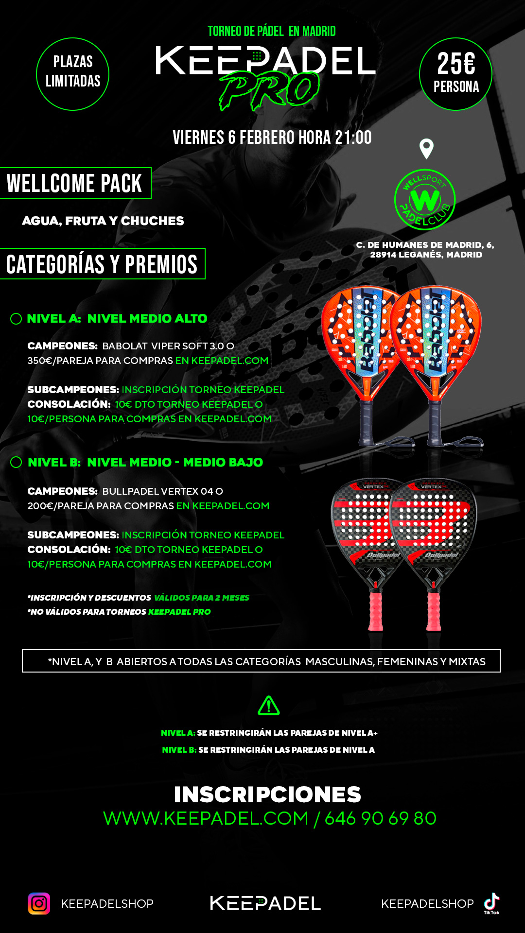 Padel World Press – El viernes 6 de febrero, el pádel nocturno vuelve a subir de nivel con una nueva edición del Keepadel Pro Nocturno, un torneo exclusivo pensado para jugadores que buscan competición real, ambiente selecto y premios de primerísimo nivel. La cita tendrá lugar en el Well Sports Pádel de Leganés, un club indoor de referencia, con inicio a las 21:00 h y convocatoria a las 20:45 h, en una noche diseñada para competir al máximo desde el primer punto.