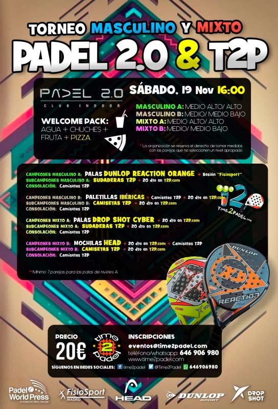 Padel World Press .- El mes de noviembre llega a su ecuador. El otoño ya está con nosotros en todo su esplendor y, ante la llegada de un nuevo fin de semana, desde Time2Pádel vuelven a proponer a los aficionados que no se pierdan una cita que se jugará el sábado, 19 de noviembre, a partir de las 16:00 horas.